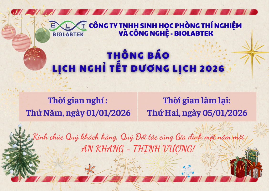 Công ty Biolabtek xin trân trọng thông báo tới Quý khách hàng, Quý đối tác lịch nghỉ TẾT DƯƠNG LỊCH 2026 như sau: